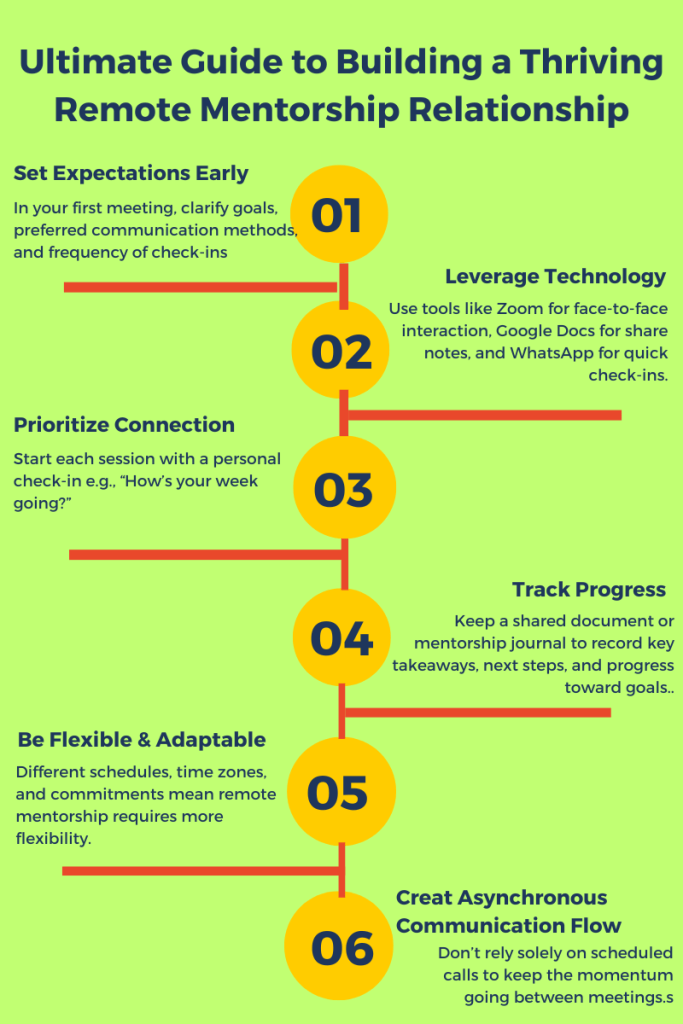 Remote mentorship has redefined professional development, breaking down geographical barriers and connecting mentors and mentees from different industries, backgrounds, and time zones. Whether you’re seeking career guidance from an expert across the world or mentoring a promising professional from another country, virtual mentorship can be just as impactful, engaging, and transformative as in-person mentorship—when done right.